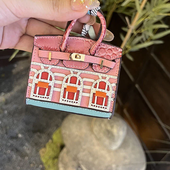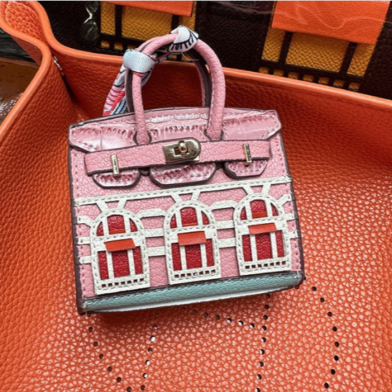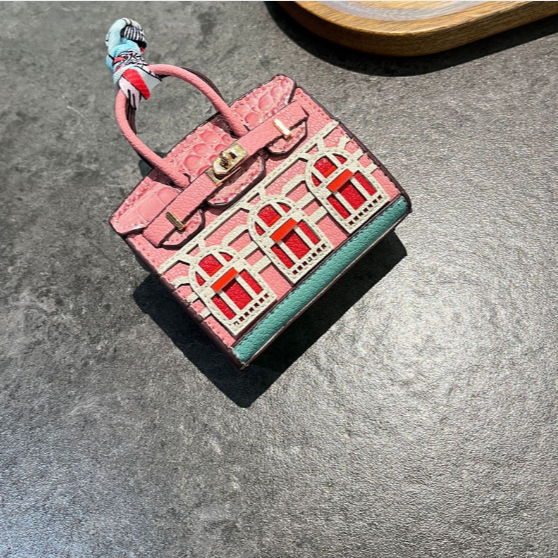 Turn heads with this miniature house-shaped charm that’s as enchanting as it is functional. Inspired by the iconic Birkin silhouette and painted in soft baby pink with vibrant red windows and delicate white details, this little luxury is more than just a pretty face.