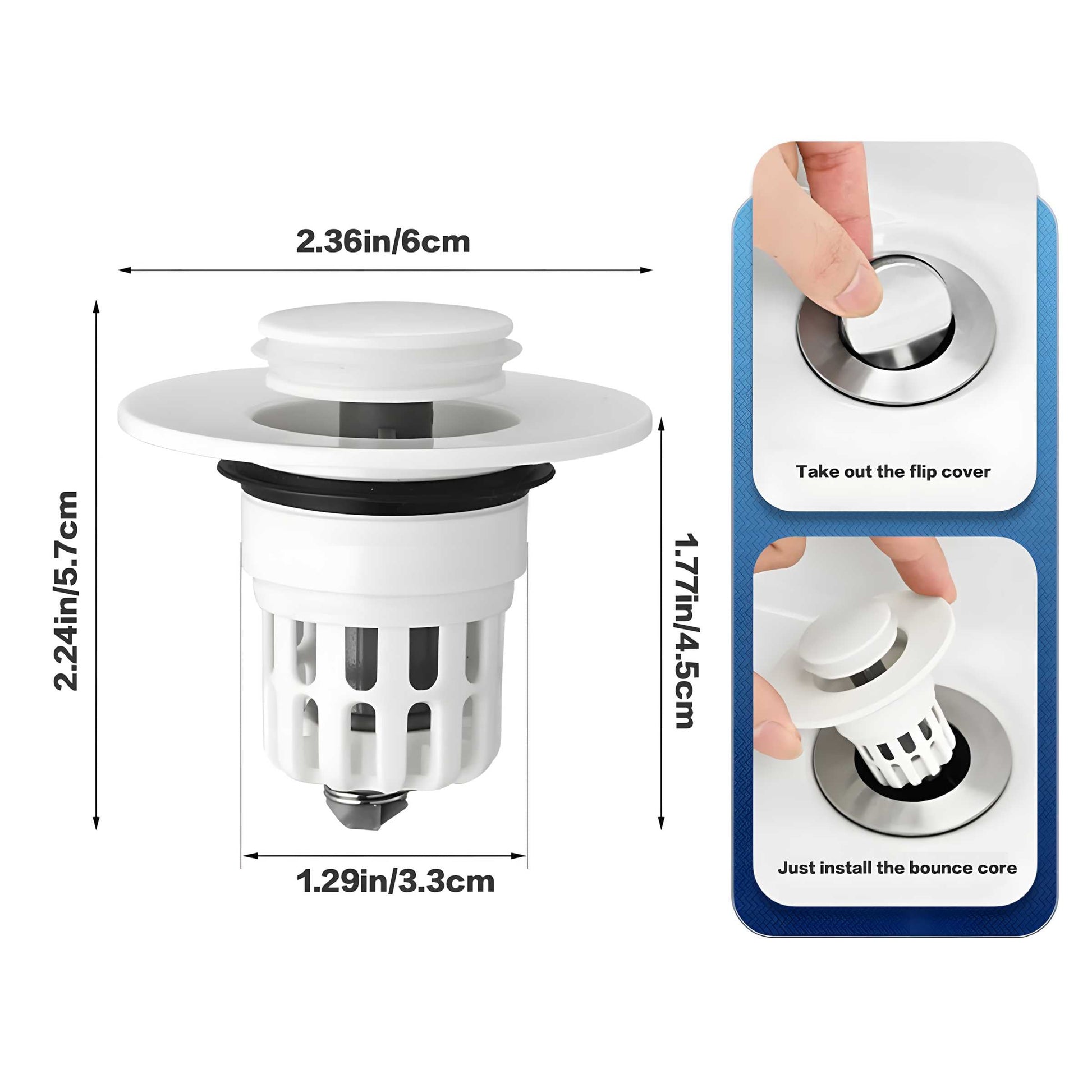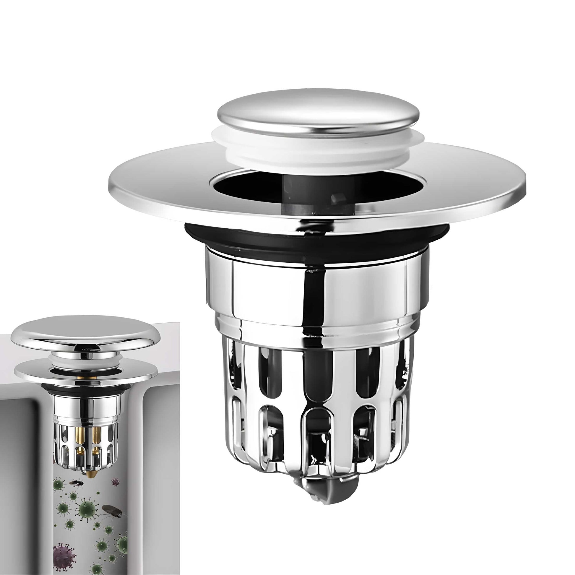 Enhance your bathroom with our Bathroom Sink Plug Pop-Up Drain Filter, combining superior functionality with a touch of elegance. Its robust build and efficient performance make it an essential addition to your bathroom, ensuring a clean and clog-free sink.