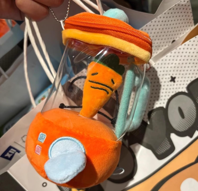 With its amusingly indifferent facial expression, the carrot plush adds a perfect touch of humor and charm to any backpack, desk, or bedroom.