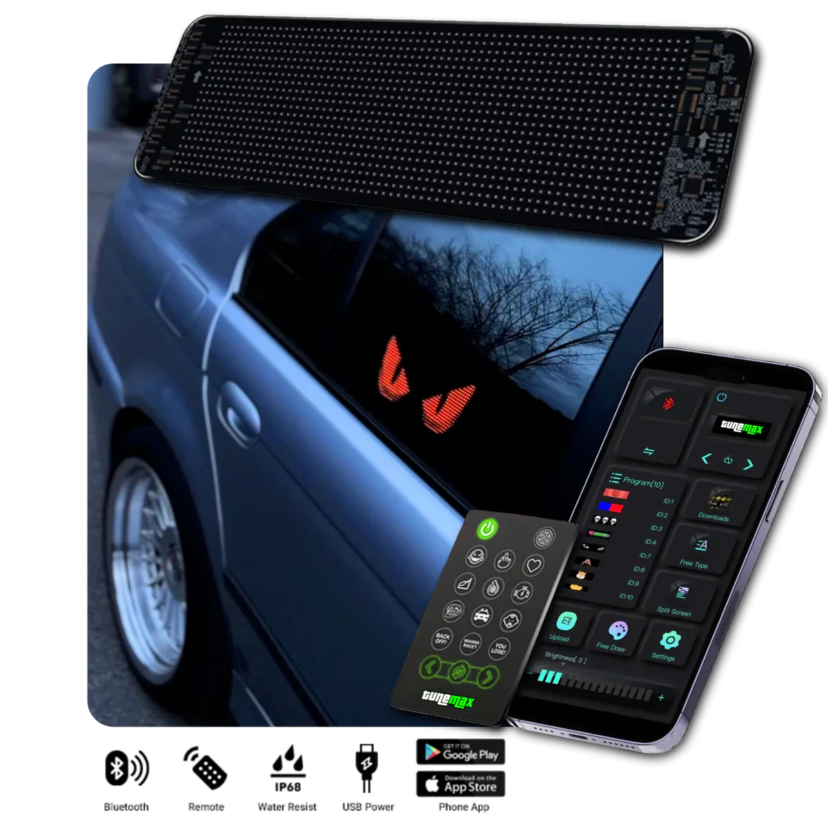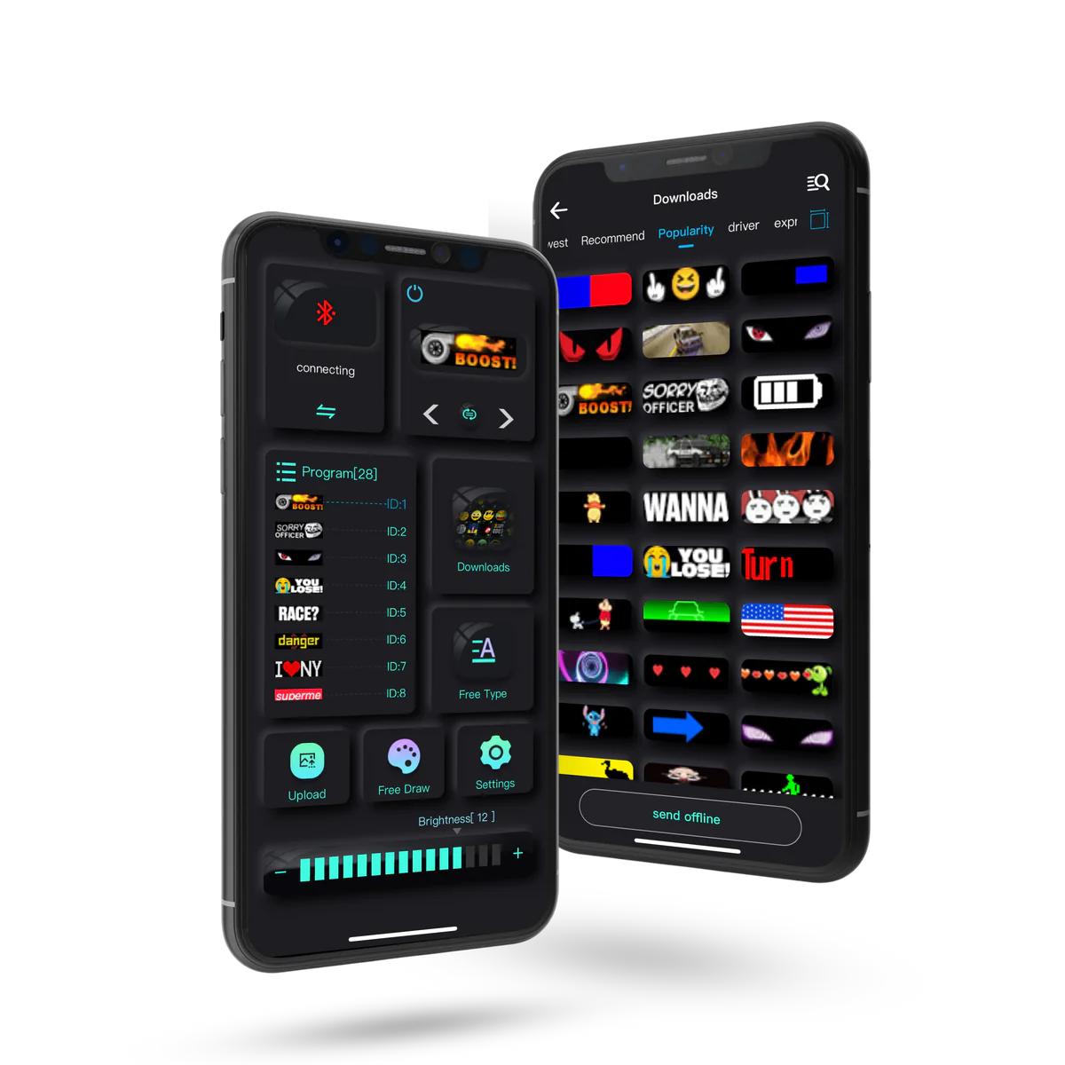 Simply plug the USB into a power source, use the app on your Apple or Android device, connect via Bluetooth, and unlock a world of features. Free-draw, free-text, upload your own images or GIFs, but here's the kicker: Our App got an online library packed with tons of GIFs. Imagine cruising down the street with the coolest GIFs in the universe – your car's gonna steal the spotlight like never before!
