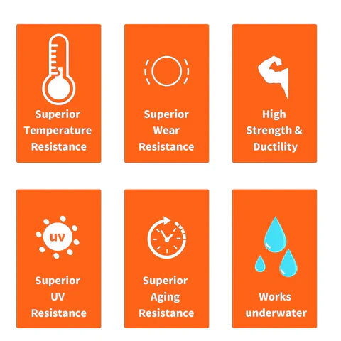 - Features: Waterproof, UV/heat/cold resistant, adhesive, leak-proof