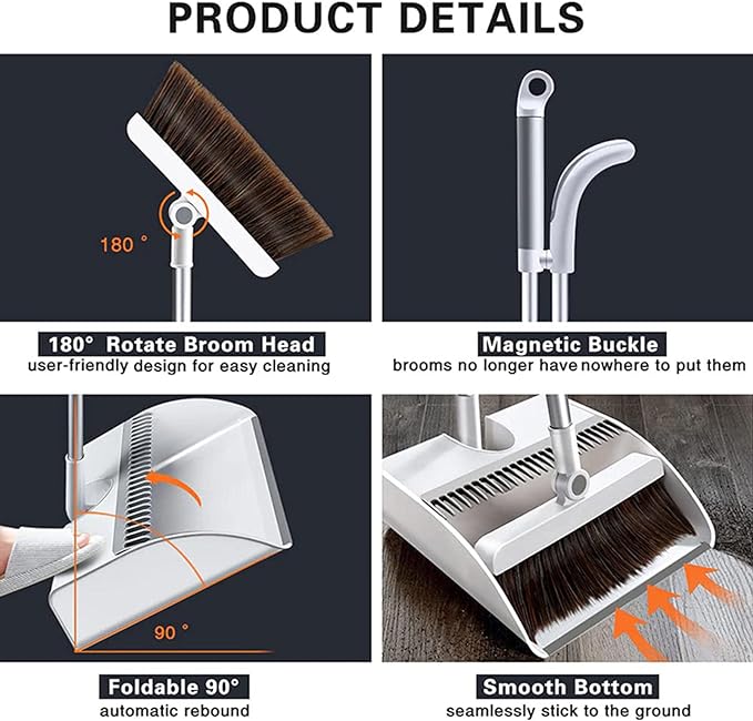 - High Quality Material:- The broom and dustpan set is made of high-quality PP plastic material, which makes this broom dustpan set last longer. The handle of this broom and dustpan set for home is made of high-quality stainless steel, which is not easy to rust and deform!