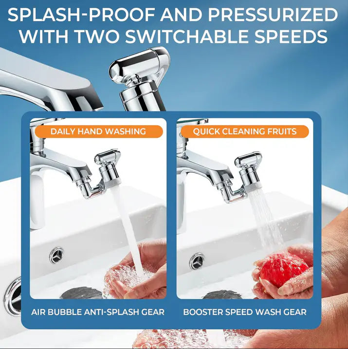 Upgrade your sink experienceb with our Rotating Faucet Extender designed to give you full control over water flow and direction. Its multi-angle 360° rotation helps reach every corner of your sink, making washing dishes, fruits, or hands easier and splash-free. Crafted with a durable metal finish and leak-proof silicone rings, it installs in seconds and fits most standard faucets. Perfect for kitchens and bathrooms, this smart attachment saves water, reduces mess, and adds everyday convenience to your home.