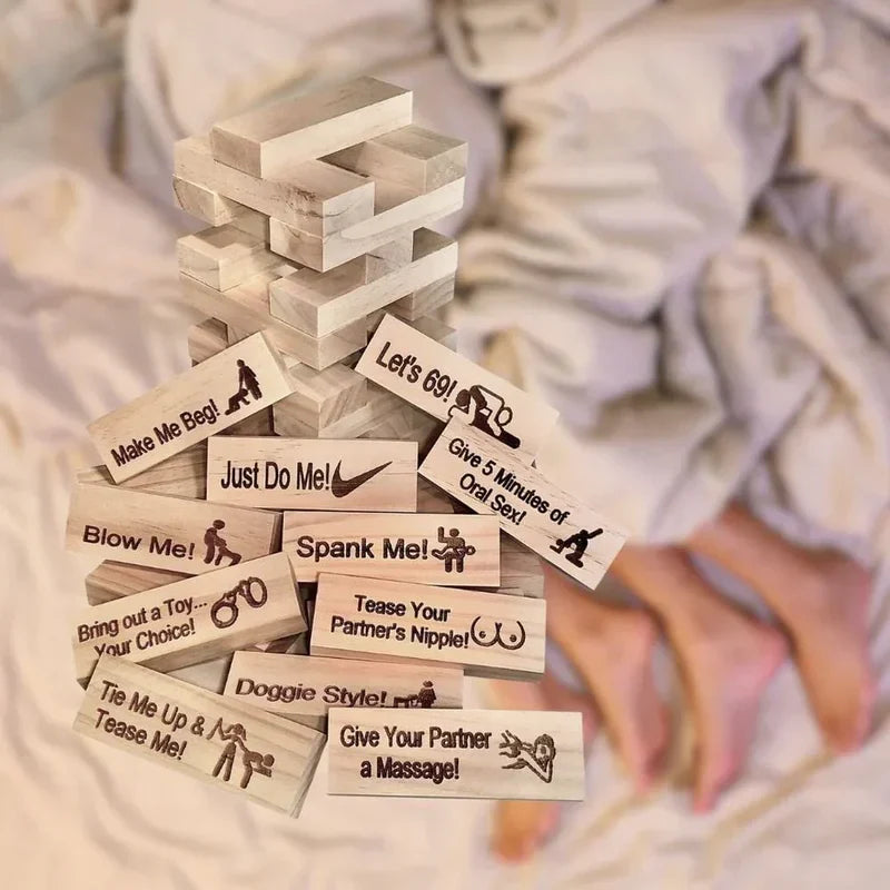 Introducing Naughty Jenga, an exhilarating twist on the classic game that guarantees moments filled with laughter and joy! Get ready to spice up your gatherings and create memories with friends like never before! 😄✨