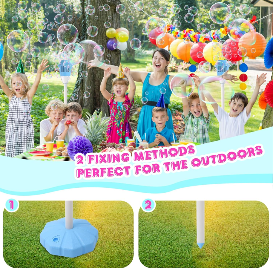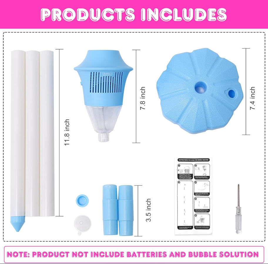 Unlike ordinary tabletop bubble machines, its towering 47-inch design blows bubbles high into the air, creating a breathtaking, sky-filled displayâperfect for kids' parties, weddings, or any celebration where magic is on the agenda.