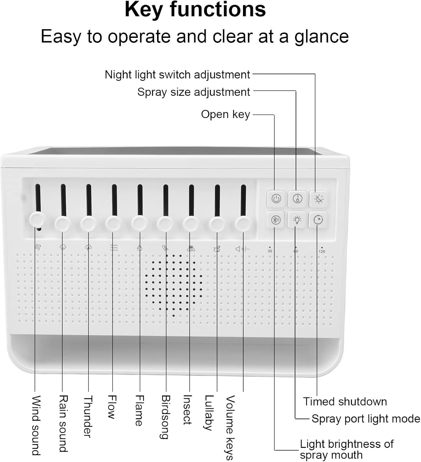 ✔ Enhances sleep quality with soothing sounds and gentle mist.